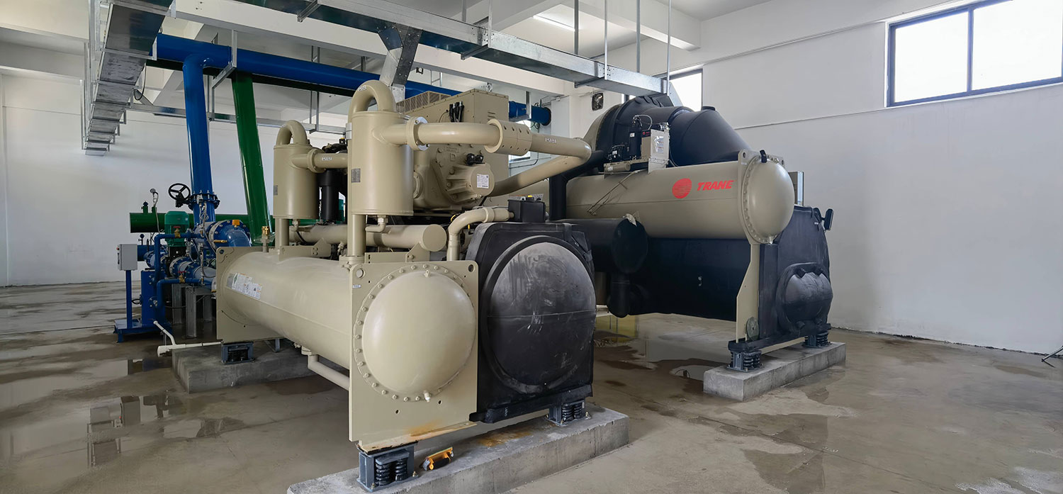·厂房采用柜式空气处理机组供冷,由于风柜的送风量大非常匹配制冷机房全年动态水温的调节。