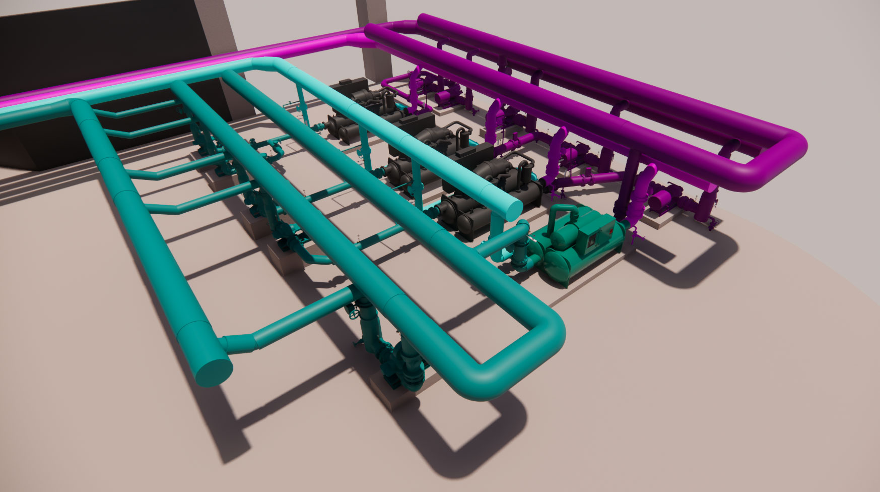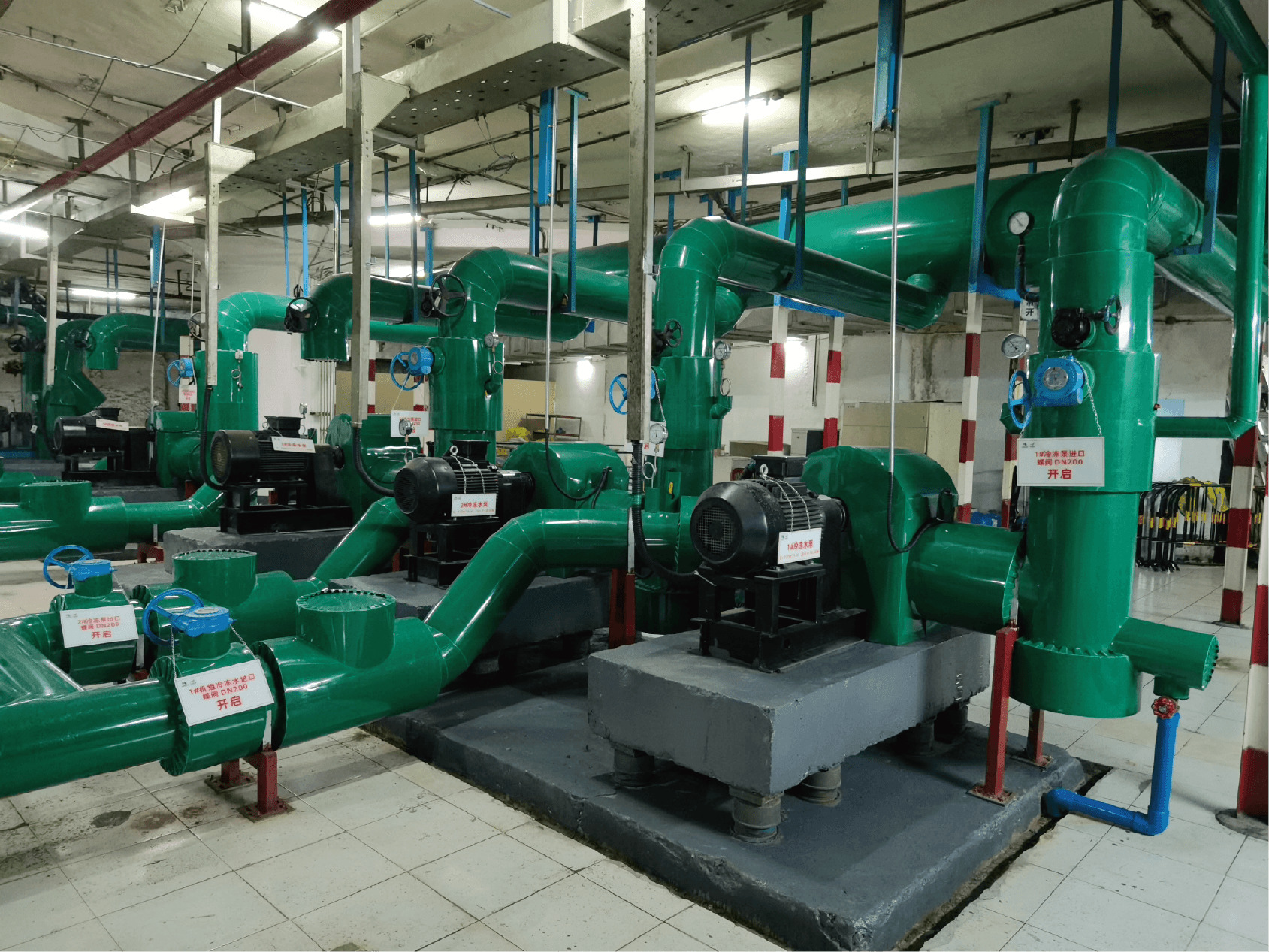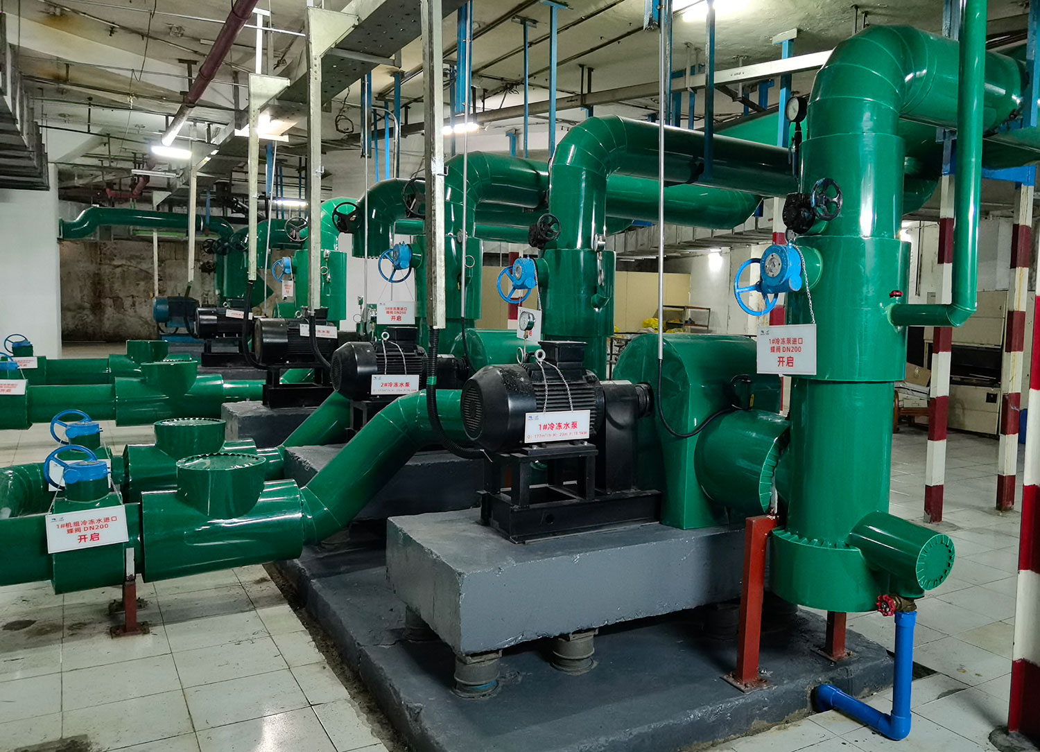 更换新变频主机、水泵、冷却塔,提升机房能效值;采用低阻力阀件,水泵与主机一对一连接,降低阻力;安装高效机房能效管理系统,根据变化自动采取最优的控制策略,实时监测系统运行能效,提高节能效益。