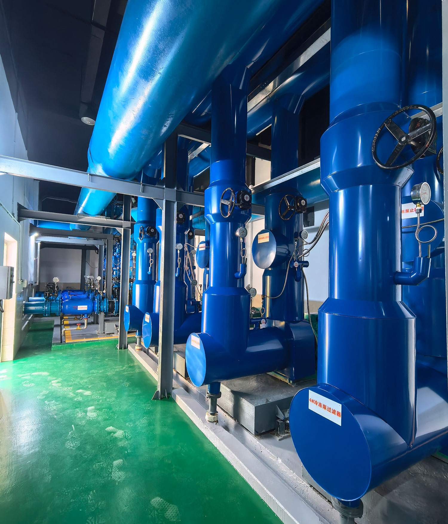 3、制冷机房安装温振仪,监控系统,噪声仪,冷媒泄漏漏水警报,门禁系统,漏水警报,人体感应器等检测装置全方位保障制冷站的安全,实现无人值守。