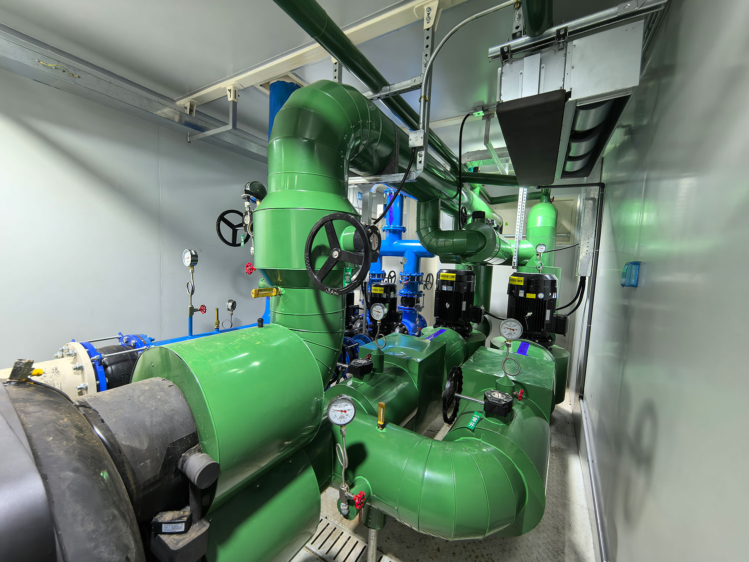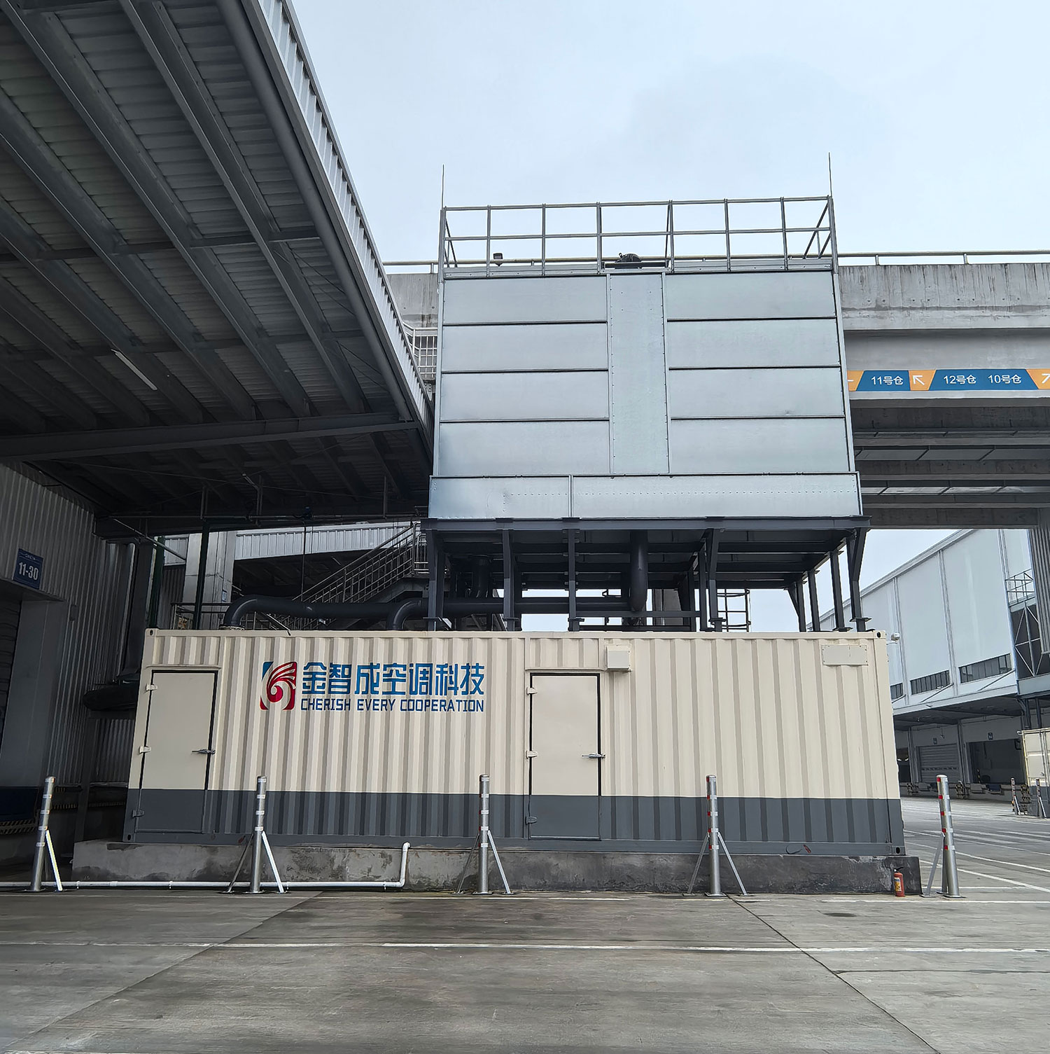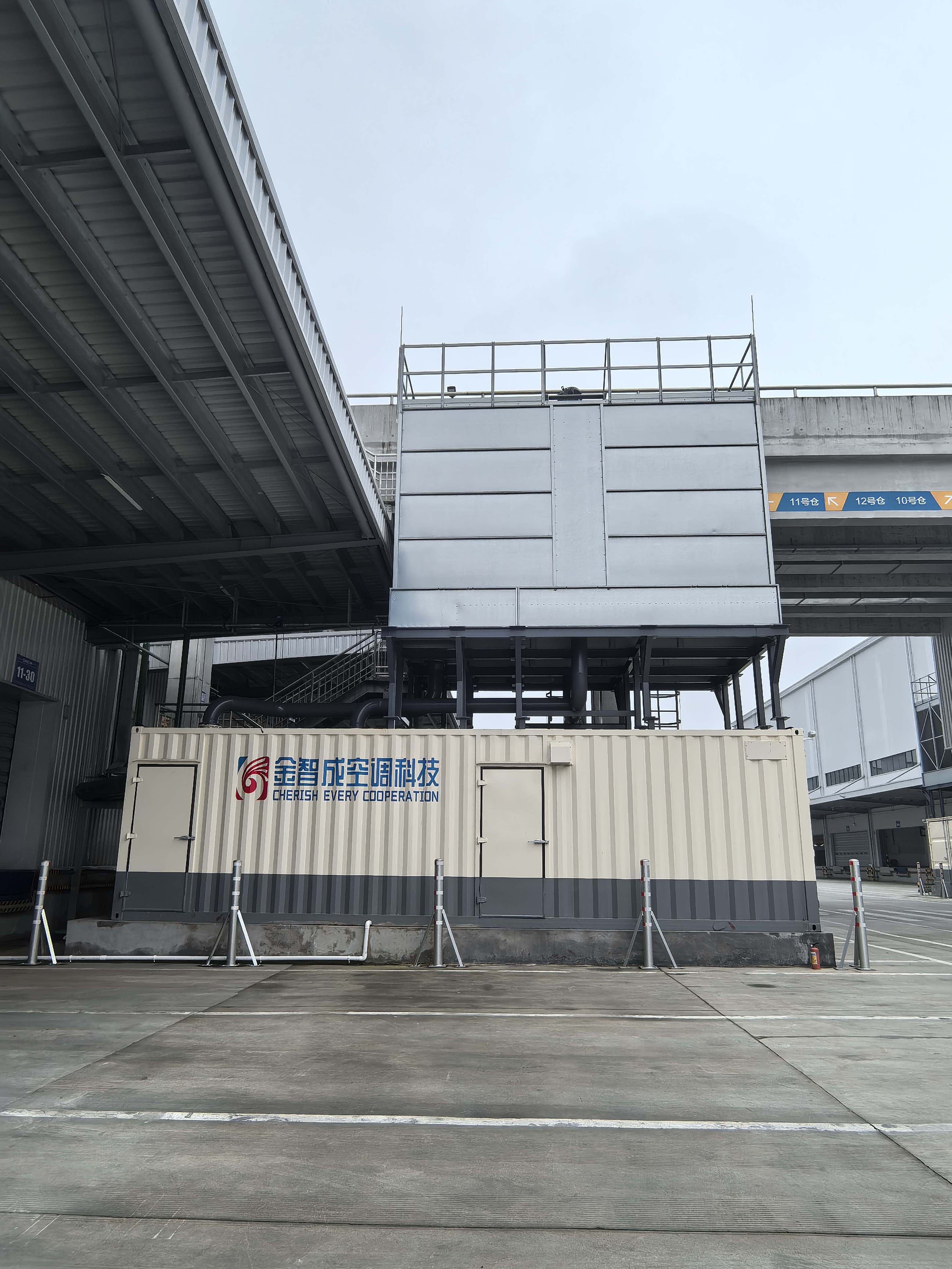 项目采用集装箱一体式冷站,将制冷机组、循环水泵、配电柜、控制系统等关键设备集成于集装箱内部,形成紧凑的功能单元,旨在实现快速部署、灵活移动和高能效运行。