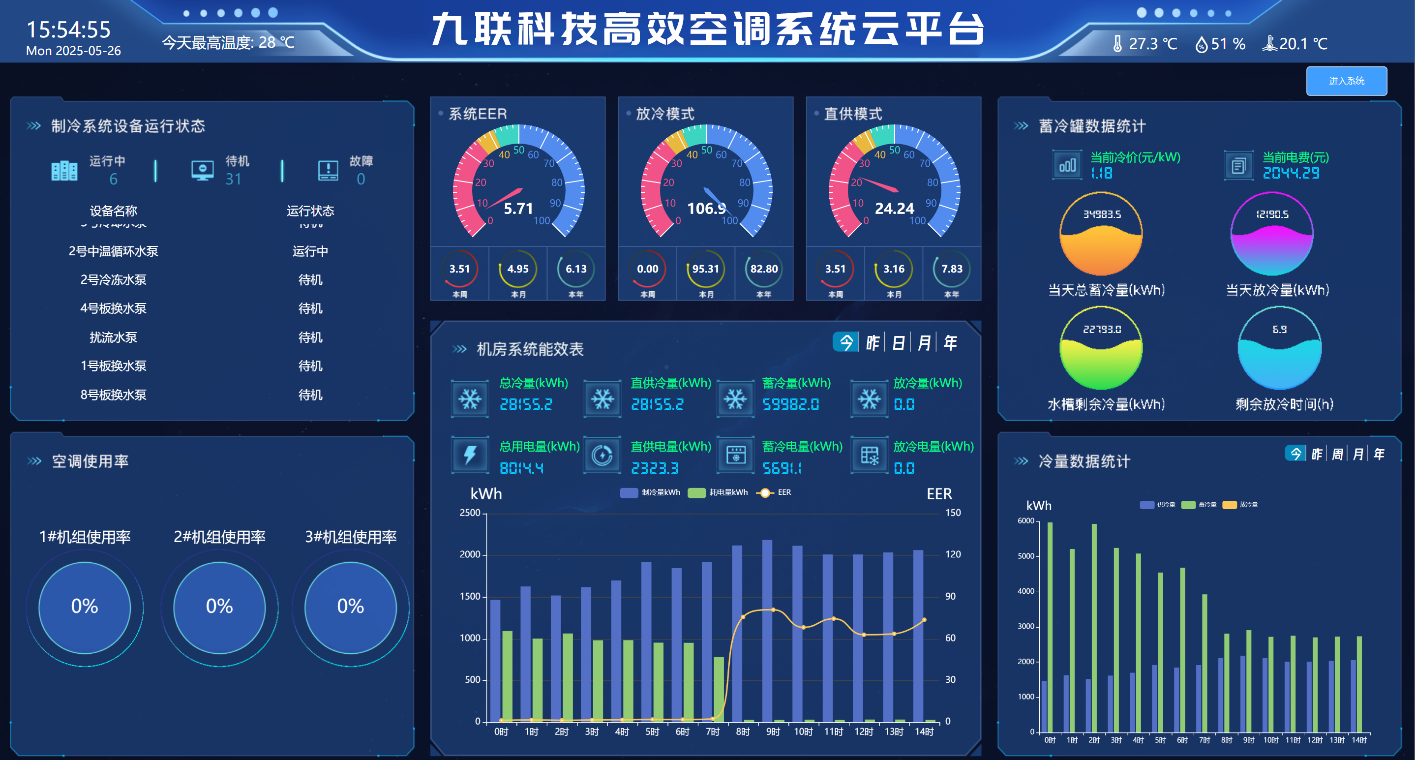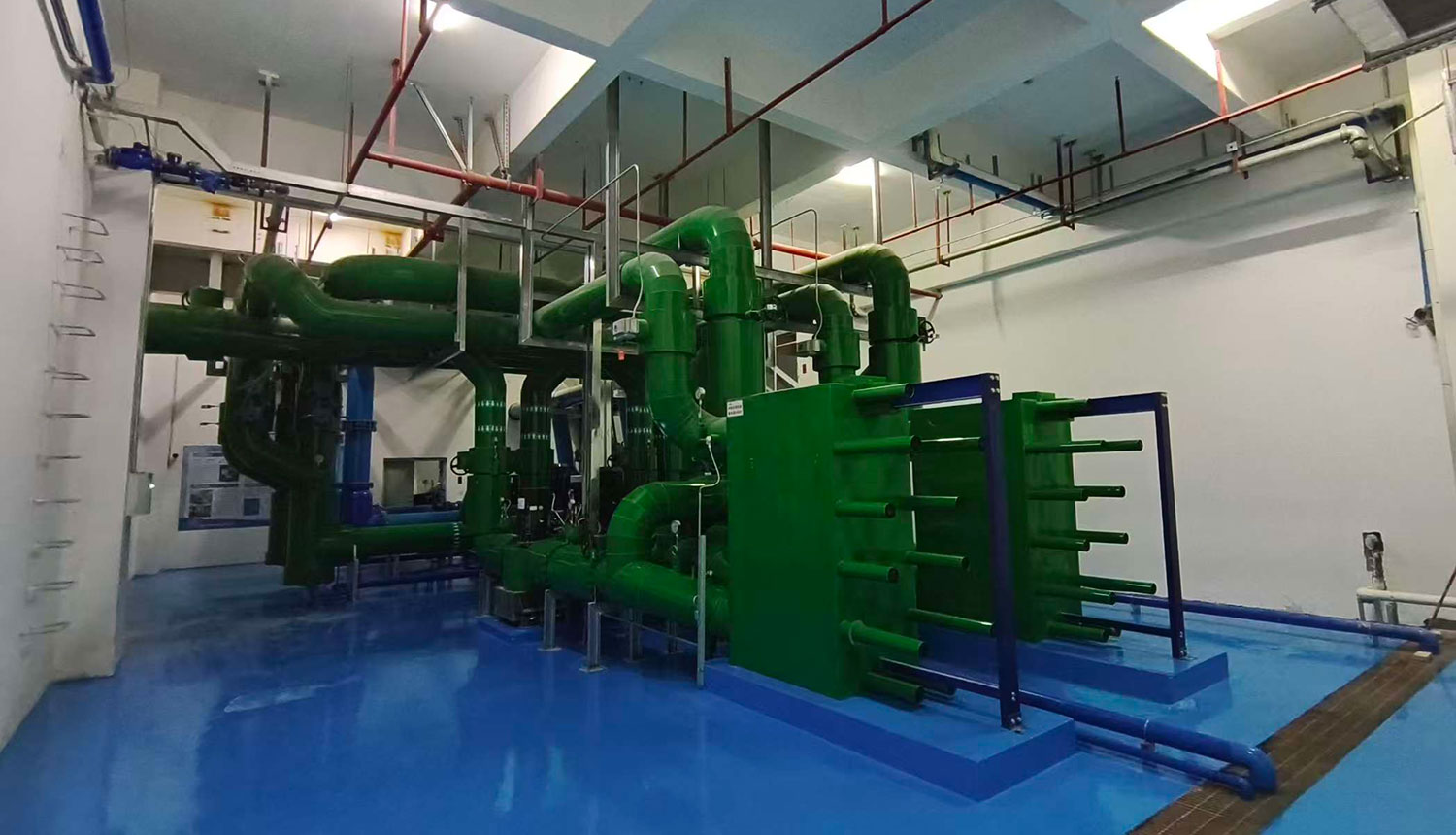 厂房采用中温水系统供冷,由于峰谷电价差距较大,夜间电价低谷时段蓄存4℃/14℃的冷冻水于蓄冷水池内,白天电价峰值时段通过板式热交换器释放热量。根据检测到的蓄冷水池温度和峰谷平时间段,在平段和谷段自动开启空调主机蓄冷,用于峰段供冷。