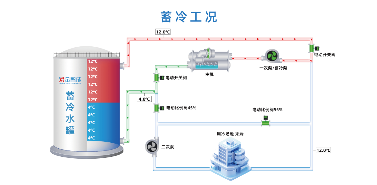 蓄冷运行模式:在蓄冷时段,制冷机组满负荷运行,将冷水蓄存在蓄冷装置中。此时,制冷机组的制冷量全部用于降低蓄冷装置中的水温,使其达到设定的蓄冷温度。例如,在夜间低谷电价时段,制冷机组将蓄冷装置的水温从常温(如 25℃)降低到 4℃左右,充分利用低谷电价时段的廉价电力。