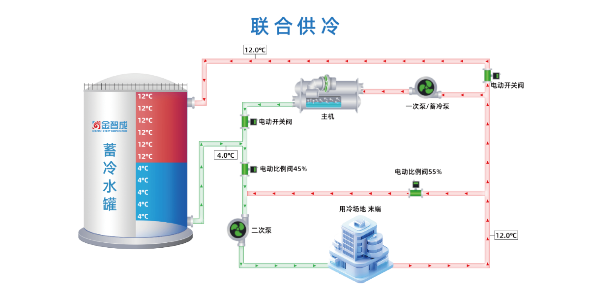 联合供冷运行模式:制冷机组和蓄冷装置同时向空调系统供冷,根据空调负荷的大小和蓄冷装置的冷量情况,动态调整制冷机组和蓄冷装置的供冷比例。例如,通过安装在空调系统中的温度传感器、流量传感器等设备,实时监测空调负荷的变化和蓄冷装置的水温、水位等参数,自动控制制冷机组的运行频率和蓄冷装置的冷水流量,使两者协同工作,以最佳的方式满足空调系统的冷量需求。
