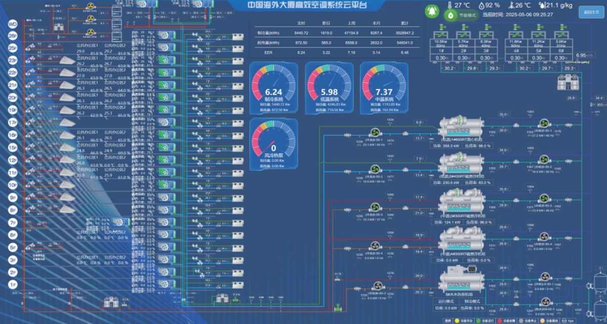 高效中央空调系统是一个更为广泛的概念,不仅包含整个空调系统从产生冷热量到将冷热量输送至各个使用空间全过程的高效性,还着重于系统的整体舒适性、节能性和稳定性,以及系统在不同季节、不同负荷下的适应性等,核心理念是减少整栋建筑的空调总能耗。