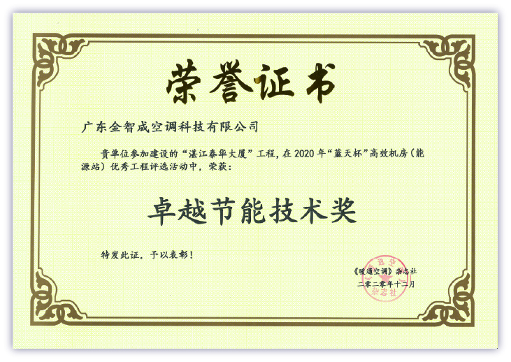 质保期内的系统能效保证、节能运维管理、维护保养及故障维护等服务响应,确保项目改造后年综合运行效率不超过0.75KW/RT。本项目在“2020年蓝天杯高效机房优秀工程评选”中,荣获“卓越节能技术奖”。