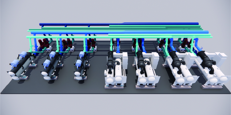 水泵与主机一对一连接有利于主机之间的流量平衡,对比传统共用集管的方式,节省电动阀投资,简化控制环节;