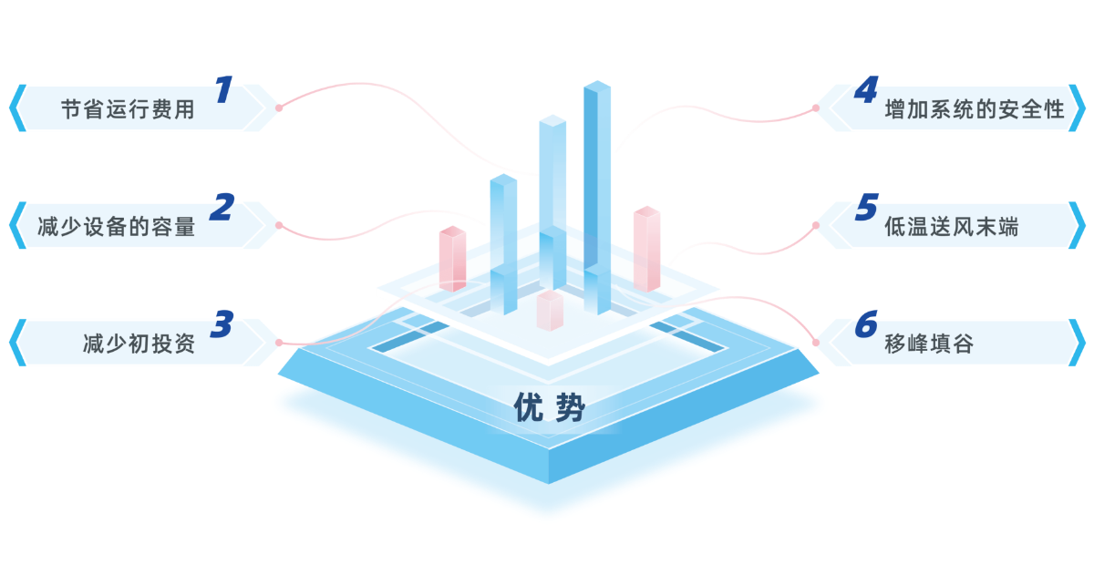 因蓄冰系统很容易提供1-4℃的冷介质温度,以实现4~9℃的送风温度,故冰蓄冷系统常常采用低温送风末端系统。低温送风的优点包括: