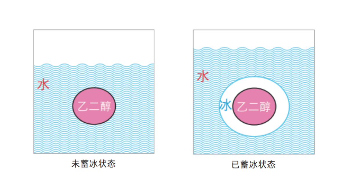 蓄冰系统需要通过载冷剂来传送冷量,载冷剂的冰点需要低于水的冰点,以便在制冰时仍能传送冷量。最常用的载冷剂是在水中添加防冻剂来降低其冰点,在乙二醇蓄冰系统中防冻剂一般采用浓度为25%的乙烯乙二醇。